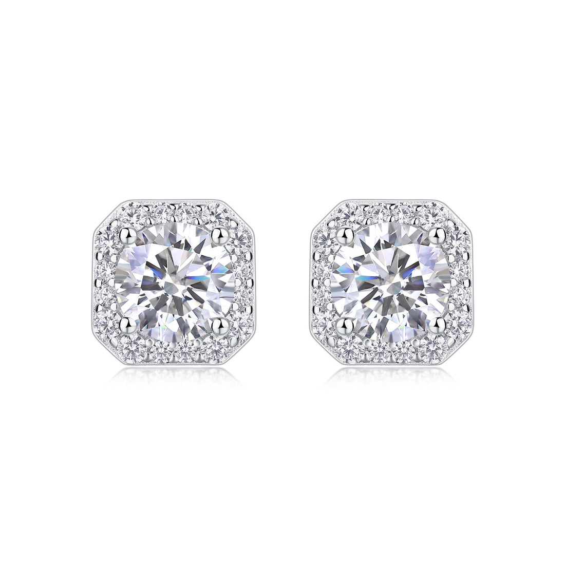 Modern sophistication meets timeless sparkle in the Pursuit Moissanite Silver Earrings by Genevra.Each stud features...