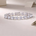 Adorned with 0.3 to 0.5-carat moissanite stones, each cut to perfection, this bracelet captures brilliance that rivals natural diamonds.