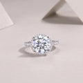 Featuring a magnificent 5-carat moissanite, this ring radiates a luminous glow that rivals the beauty of real diamonds. Crafted from S925 sterling silver and finished with premium platinum plating, it blends durability with luxurious shine.